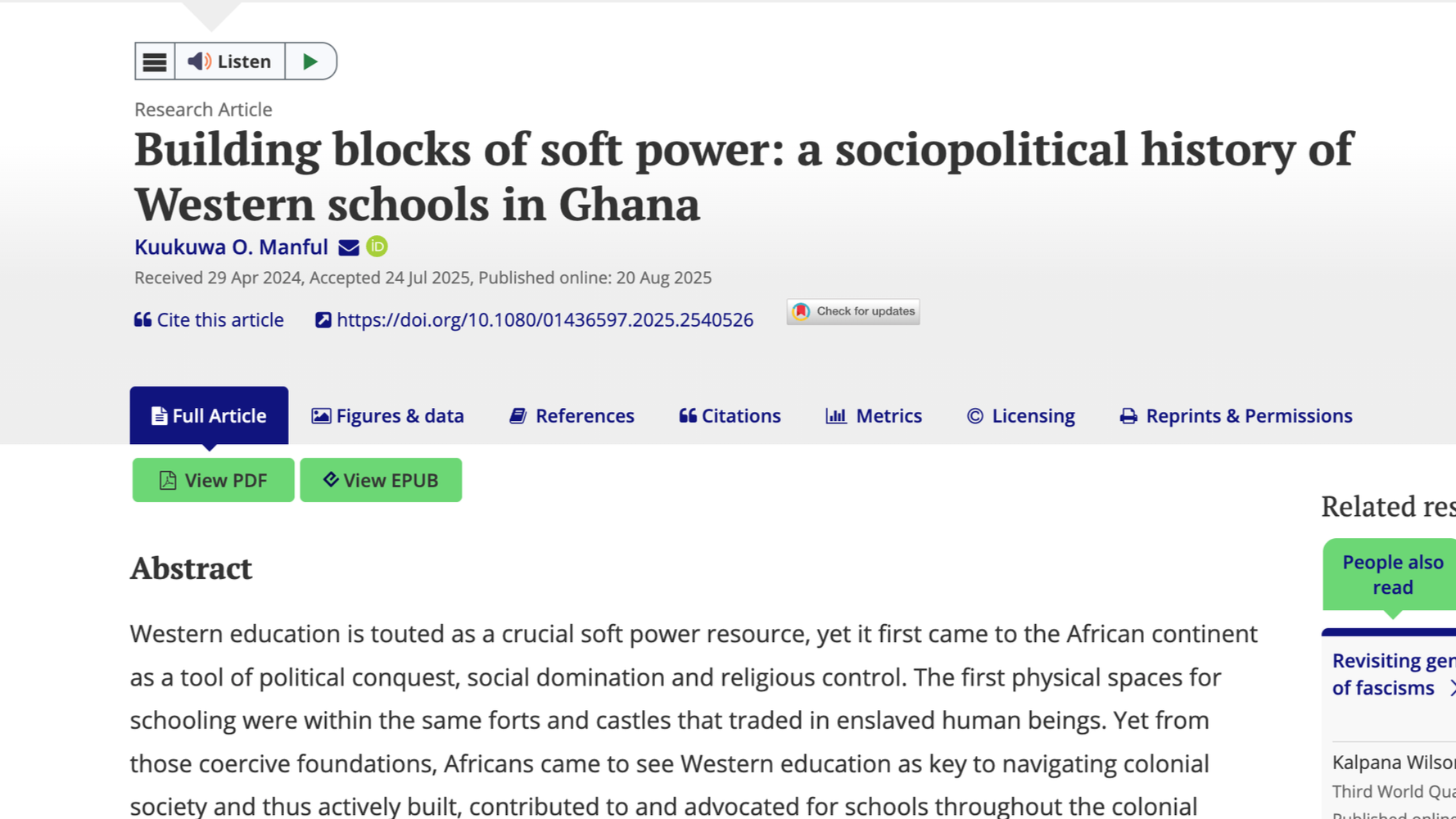 Empirically, I examine selected schools as sites of nation-building, and for the making of citizens through architectural analysis, archival research and ethnographic studies towards make empirical and conceptual contributions to the study of nation-building, citizenship and modernity in Africa.